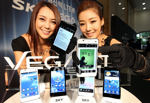 스카이는 6일 오전 상암동 디지털미디어시티 팬택사옥에서 세계 최고의 해상도를 자랑하는 LTE 스마트폰 ‘베가 LTE’ 출시 행사를 열었다. 이달 중순경 SK텔레콤을 통해 판매될 예정인 베가 LTE는 전면 카메라에 모션인식 기능을 구현해 직접 터치하지 않고 책장과 사진첩을 넘기고 음악도 들을 수 있다.