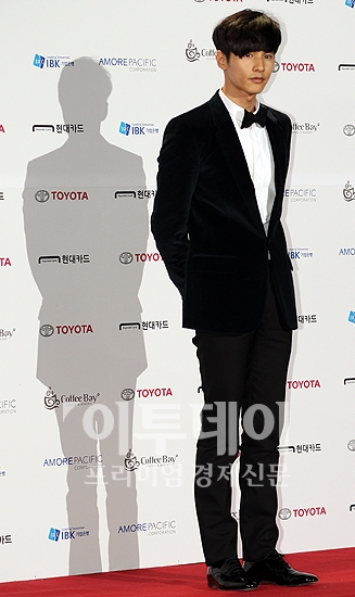 배우 원빈이 17일 오후 세종문화회관에서 열린 제48회 대종상영화제에 입장하며 포즈를 취하고 있다.