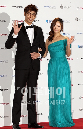 배우 최다니엘과 서영희가 17일 오후 세종문화회관에서 열린 제48회 대종상영화제에 입장하며 포즈를 취하고 있다.
