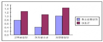 고위험군 청소년의 재범율도 서비스 수혜 청소년이 0,79회인 것에 비해 비수혜청소년은 1.26회로 낮았다. 15세 이하의 저연령 집단의 재범율도 억제되는 경향을 보였다.
