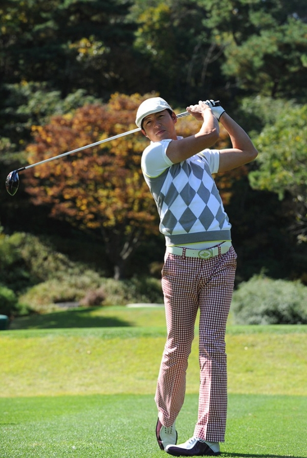 ▲탤런트 이정진이 최근 남촌CC에서 열린 캘러웨이 초정 자선골프대회에서 드라이버 샷을 한뒤 날아가는 볼을 바라보고 있다. 사진제공 그리드컴