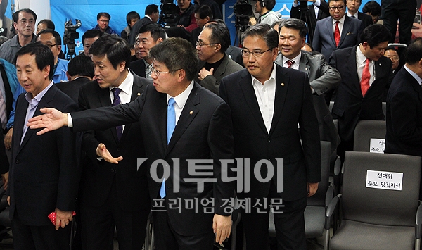 10.26 재보궐선거가 실시된 26일 저녁 서울 중구 태평로 프레스센터 나경원 후보 선거캠프에서 한나라당 당직자들이 방송3사 출구조사 결과 나경원 후보가 뒤지는것으로 나타나자 자리를 떠나고 있다.
