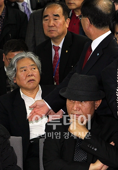 10.26 재보궐선거가 실시된 26일 저녁 서울 중구 태평로 프레스센터 나경원 후보 선거캠프에서 지지자들이 방송3사 출구조사 결과 나경원 후보가 뒤지는것으로 나타나자 심각한 표정으로 자리에 앉아있다.