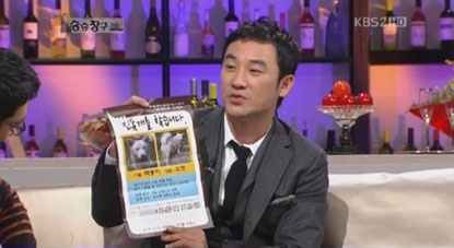 지난 1일 방송된 KBS2 '승승장구'에 출연한 엄태웅이 잃어버린 개 '백통이'의 전단지를 보여주며 "집 나간 백통이를 찾기 위해 나왔다"고 출연 이유를 밝힌 것.