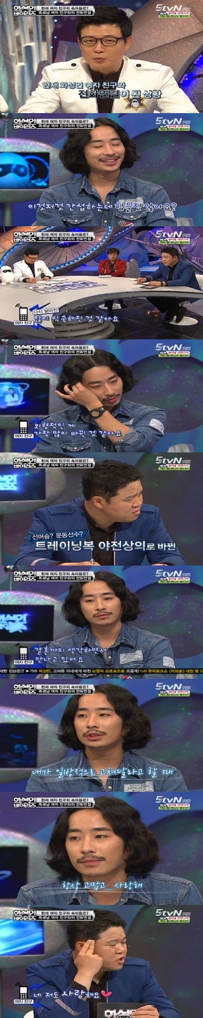 족쇄남 여자친구와의 통화에서 MC들이 족쇄남에게 인사를 건네라고 하자 여자친구는 "오빠 떨지말고 촬영 잘하세요~"라고 존댓말로 애교를 떨었다. 반말은 안된다는 족쇄남 연애규칙때문이었다.