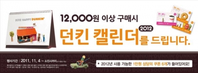 또 던킨 캘린더 에는 2012년 한 해 동안 던킨도너츠 전국매장에서 사용할 수 있는 1만원 상당의 쿠폰 6개가 포함되어 있다. 음료 사이즈 업그레이드, 도넛이나 베이글 구매 시 동일 제품 하나 더 증정 등 다양한 혜택을 담은 쿠폰이며, 쿠폰에 기제된 시기에 맞춰 사용 가능하다.