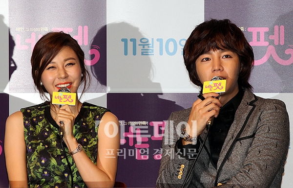 너는펫의 주연배우 김하늘과 장근석이 2일 오후 건대입구 롯데시네마에서 열린 언론시사회에 참석해 기자들의 질문에 답변을 하고 있다.