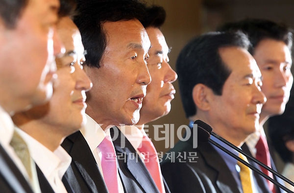 한미 자유무역협정(FTA) 국회 비준안 처리 문제로 여야 간 대치 상태가 거듭되고 있는 3일 민주당 손학규 대표가 국회 정론관에서 야권 통합 추진계획을 발표하고 있다.
