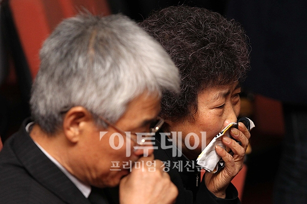 2011 안나푸르나 남벽 원정대 故박영석·故신동민·故강기석 합동 영결식이 열린 3일 오전 종로구 연건동 서울대학교병원에서 유가족들이 고인을 애도하며 오열하고 있다.