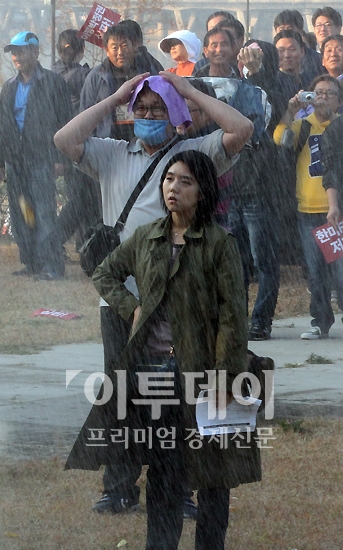 [포토]한미 FTA 반대시위, '물대포 바라보는 시민들'