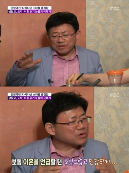 이날 엄용수는 "이혼을 개그로 승화했다. 비극이지만 희화화시켰다"라고 말했다. 오히려 개그맨으로서는 이혼 후에 이름을 더 알리게 됐다고 너스레를 떨었다.