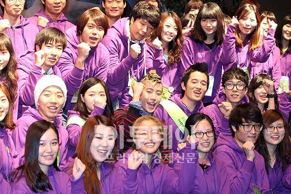 2011 청소년흡연예방캠페인 ‘신분증 확인 동의합니다 ’가 열린 4일 오후 서울 종로구 세종로 올레스퀘어에서 홍보대사로 위촉된 가수 박재범이 서포터즈들과 함께 기념촬영을 하고 있다.