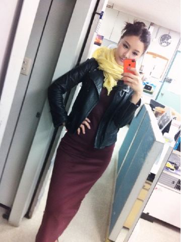 박은지는 지난 3일 자신의 트위터에 "오늘은 종일 근무를 위한 정말 이지 캐주얼~신발도 고무신 플랫^^ 지금 변신중!9시 뉴덱 방송에서 만나요"라는 글과 함께 와인색 원피스에 가죽재킷, 노란색 머플러와 머리를 묶어 올린 셀프카메라 사진을 공개했다.