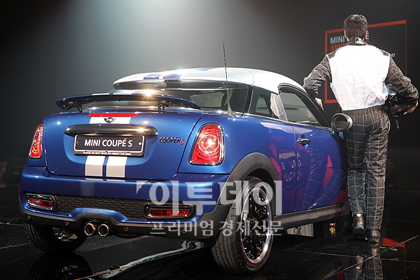 BMW는 8일 오전 서울 광장동 W호텔에서 프리미엄 소형차 브랜드 MINI 최초의 2인승 모델이자 5번째 모델인 ‘MINI 쿠페’ 출시행사를 열었다. MINI 쿠페는 BMW 최초 액티브 리어 스포일러가 탑재돼 주행속도가 80km에 도달하면 자동으로 펼쳐진다. 가격은 MINI 쿠퍼 쿠페가 3790만원, MINI 쿠퍼S 쿠페가 4290만원이다.(VAT포함)
