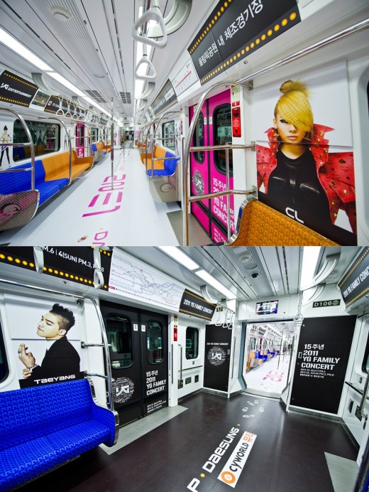 지난 5일부터 운행된 'YG패밀리 열차'는 신분당선 열차 중 하나를 YG패밀리 소속 연예인들로 꾸몄다. 스타일리시한 분위기와 독특한 디자인이 한 눈에 'YG 스타일'임을 알게 해 준다.