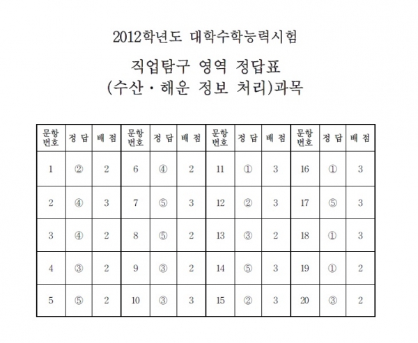 [수능] 직업탐구영역 수산·해운 정보처리 답안