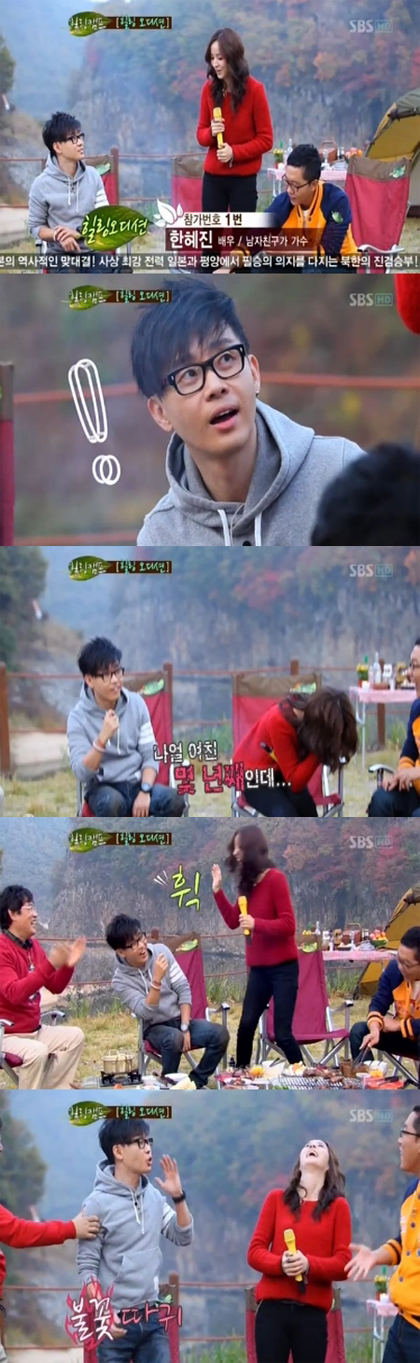 이승환의 장난에 한혜진은 순간 이승환의 뺨을 때리는 듯한 자세를 취했다. 이승환은 "불꽃 따귀를 때리는 줄 알았다"며 놀란 모습을 보여 다시 웃음을 자아냈다.