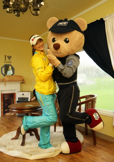 18일 롯데스카힐 제주CC에서 개막하는 ADT캡스 챔피언십에 출전한 김하늘(23·BC카드)이 대회 마스코트인 캡돌이와 포즈를 취했다.