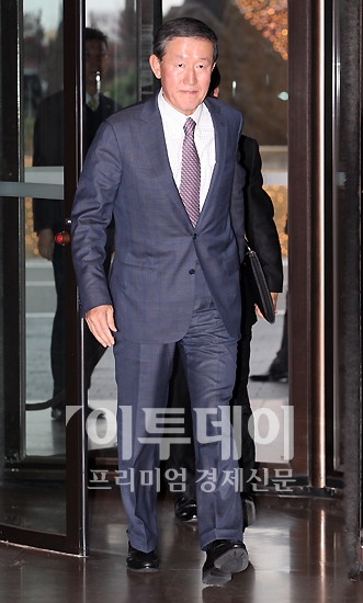 허창수 전경련 회장이 17일 오후 장충동 신라호텔에서 열린 전국경제인연합회 정례회의에 참석하고 있다.