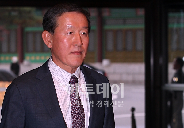 허창수 전경련 회장이 17일 오후 장충동 신라호텔에서 열린 전국경제인연합회 정례회의에 참석하고 있다.