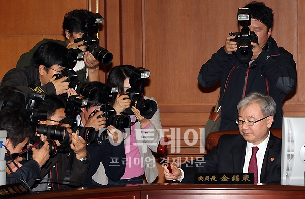 김석동 금융위원장이 18일 오후 여의도 금융위원회에서 열린 임시회의를 주재하고 있다. 이날 열리는 회의에서 론스타펀드에 대해 외환은행 지분 매각을 명령할 예정인 가운데 매각방식과 이행기간에 관심이 집중되고 있다.