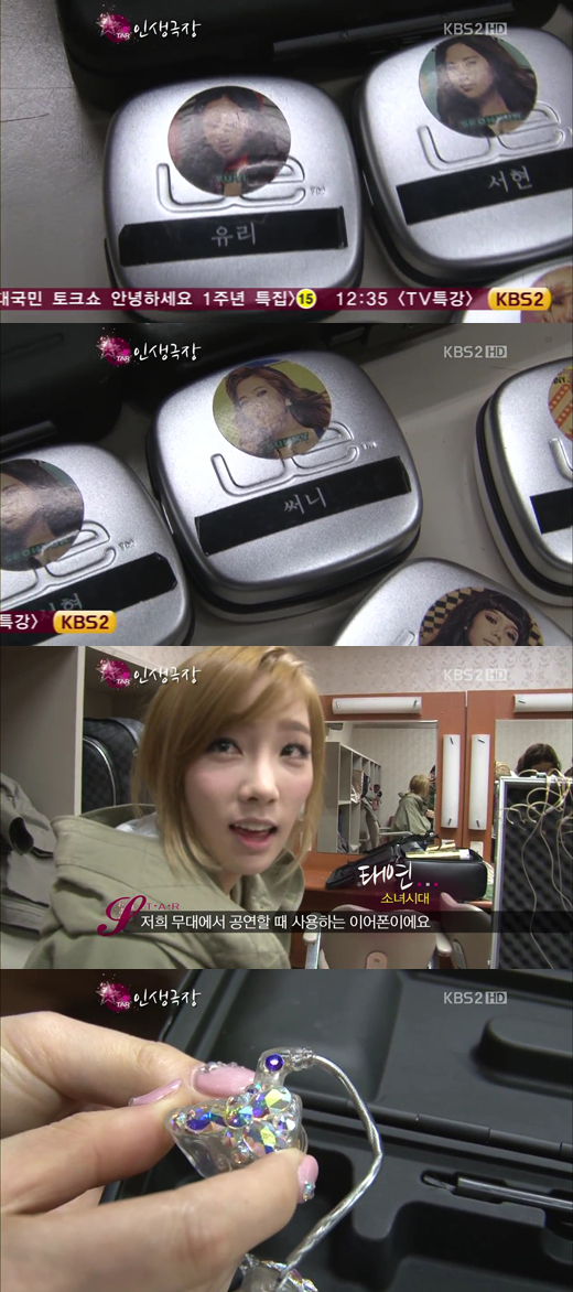 첫 방송을 앞두고 눈에 띈 것은 멤버들의 얼굴 스티커가 붙은 케이스였다. 이에 대해 태연은 “우리 무대에서 사용하는 이어폰이다. 모형을 만들어서 제작해서 멤버마다 다르다”고 소개했다.