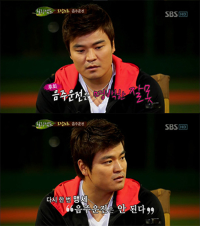 추신수는 "팀이 역전승을 거둔 날 뒤풀이를 했었다"며 "미국이라는 나라는 대리운전도 없고 택시도 콜택시를 불러야 해 순간적인 유혹을 참지 못했다"고 말했다.