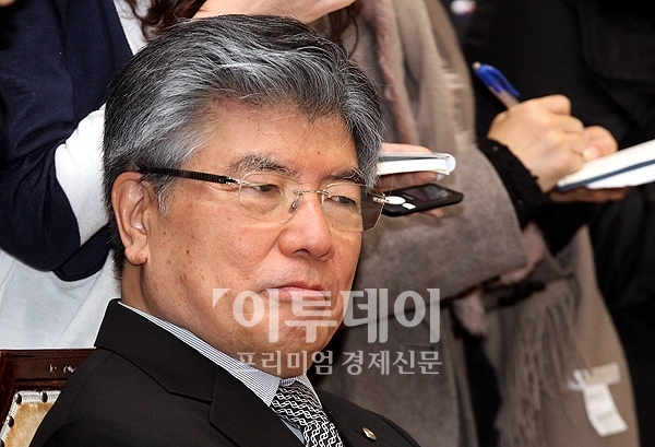 김중수 한국은행 총재가 23일 오전 서울 중구 남대문로 한국은행에서 열린 ‘경제동향간담회’시작전 참석자들과 이야기를 나누고 있다.