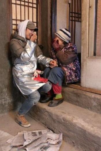 이효리는 22일 자신의 트위터에 "추운데 찾아와줘서 고맙다며 할머니는 눈물을 훔치셨고 저도 울었다"라는 글과 함께 한 장의 사진을 공개했다.