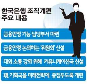 ‘조직개편 기본방향’을 보고 받은 금융통화위원들도 “당초 얘기했던 것보다 규모가 크지 않다”는 반응을 보인 것으로 전해졌다.