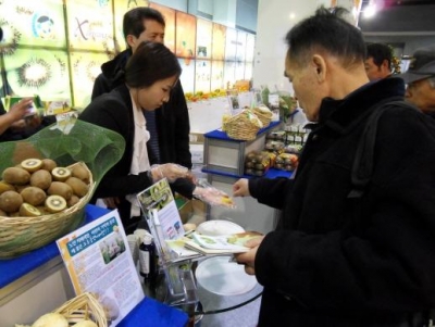 ‘2011 대한민국 과실대전’이 열린 2일 서울 양재동 aT센터에서는 무료 시식행사가 진행됐다. 이날 행사장을 찾은 한 방문객(오른쪽)이 키위를 맛보고 있다.