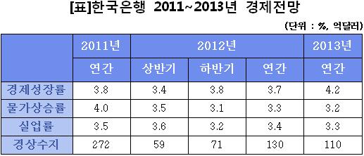 [표]한국은행, 2011~2013년 경제전망