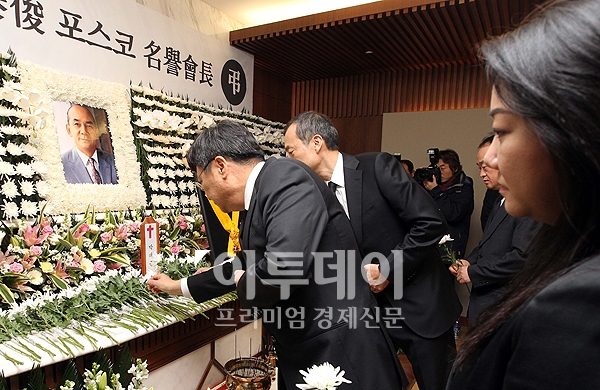 박정희 전 대통령의 아들 박지만씨와 부인 서향희씨가 14일 오전 故 박태준 포스코 명예회장의 빈소가 차려진 서울 신촌 세브란스 장례식장을 찾아 조문을 하고 있다.