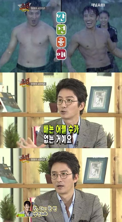 14일 방송된 종합편성채널 채널A 토크쇼 '쇼킹'에 출연한 정준호는 KBS 2TV 드라마 '아이리스' 출연 당시 배우 이병헌과 몸매가 비교됐던 이야기를 고백했다.