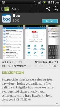 국내 엑스페리아 사용자들도 안드로이드 마켓에 있는 ‘박스 포 안드로이드 (Box for Android)’ 애플리케이션을 다운받아 계정을 만들고 로그인만하면, 평생무료로 클라우드 파일 저장 및 공유 서비스를 이용할 수 있게 된다.