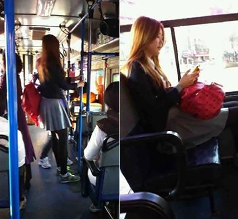 걸그룹 달샤벳의 멤버 수빈이 버스를 타고 등교하는 사진이 네티즌의 관심을 모으고 있다.