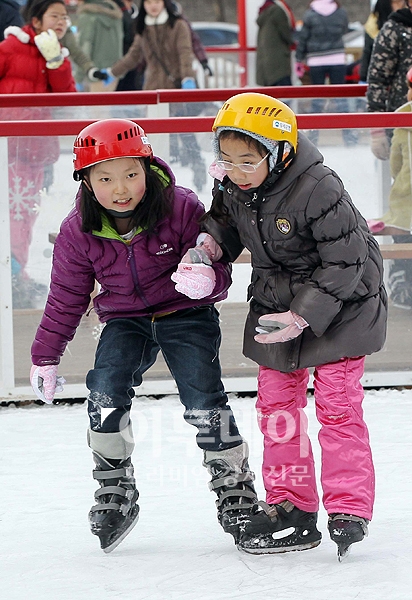 사흘동안 이어졌던 강추위가 풀려 한낮 기온이 영상으로 회복된 18일 오후 주말을 맞아 가족들과 함께 서울광장 스케이트장을 찾은 어린이들이 즐거운 시간을 보내고 있다.