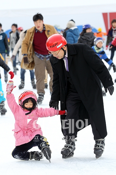 사흘동안 이어졌던 강추위가 풀려 한낮 기온이 영상으로 회복된 18일 오후 주말을 맞아 가족들과 함께 서울광장 스케이트장을 찾은 어린이들이 즐거운 시간을 보내고 있다.