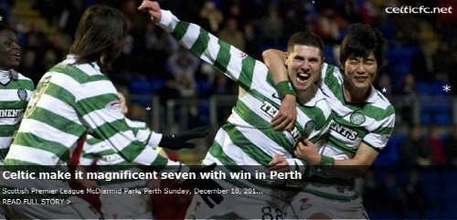 셀틱은 19일 오전(한국시간) 열린 세인트존스턴과의 2011-12시즌 스코틀랜드 프리미어리그 19라운드 원정경기서 2대0으로 승리했다. 셀틱의 기성용은 이날 경기서 팀의 두 번째 골을 성공시키며 올시즌 리그 5호골과 함께 시즌 6호골을 기록했다.