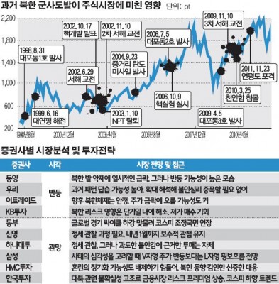 반면 일부 증시 전문가들은 이번 이슈를 저가매수 기회로 삼아도 좋다고 밝혔다. 과거 북한발 리스크가 단기 악재에 그치는 경우가 대다수였고 가장 중요한 우방인 중국이 북한의 정세 급변을 원치 않으리란 분석이다.