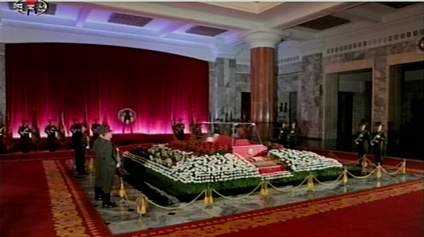 북한 조선중앙TV가 20일 오후 금수산기념궁전의 김정일 국방위원장의 시신을 공개하고 있다