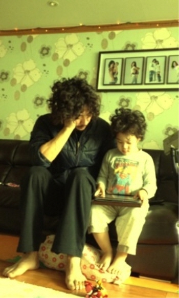 사진 속 타이거JK는 아들 조단과 나란히 앉아 태블릿PC를 집중해서 보고 있다. 특히 타이거JK와 조단은 함께 곱슬한 파마머리를 하고 있는 모습이 눈길을 끈다.