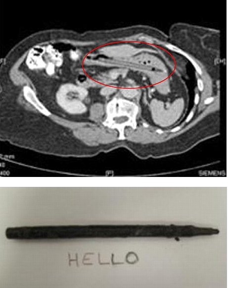 보도에 따르면 체중감소와 복통에 시달린 이 할머니는 병원을 찾았고 CT 촬영을 통해 복부에 펜이 있다는 사실을 발견했다. 사고 당시 목 안을 깊숙히 들여다보기 위해 펜을 사용하다가 실수로 삼킨 것으로 알려졌다.