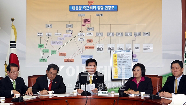 민주통합당 김진표 원내대표(가운데)가 22일 오전 국회 원내대표실에서 열린 고위정책회의에 참석해 모두발언을 하고 있다.