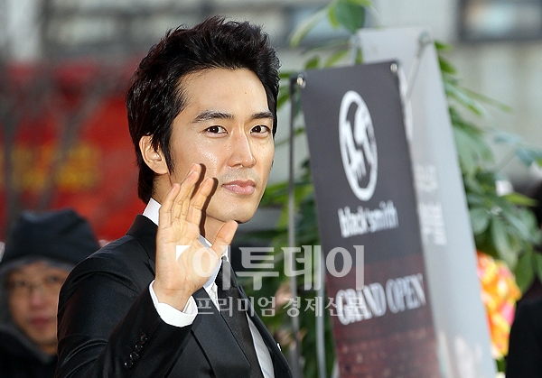 배우 송승헌이 운영하는 이탈리안 레스토랑 블랙스미스 가맹 1호 신사점의 오픈식이 22일 열렸다. 오픈식에 참석한 송승헌이 팬들을 향해 손을 흔들어 화답하고 있다.