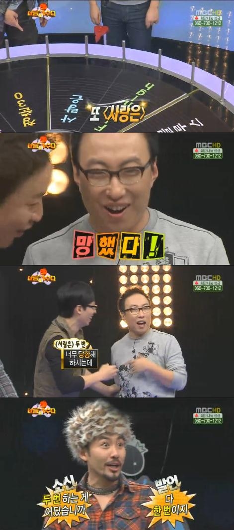 때를 놓치지 않고 노홍철이 “박명수가 ‘나는가수다’에서 재도전 안된다고 소신발언으로 유명해졌는데 이번엔 본인이 번복하고 있다”고 지적하자 박명수는 당황을 금치 못했다.