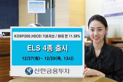 신한금융투자는 27일부터 29일 오후 1시까지 다양한 기초자산과 수익구조를 갖춘 주가연계증권(ELS) 4종을 총 350억원 규모로 판매한다고 26일 밝혔다.