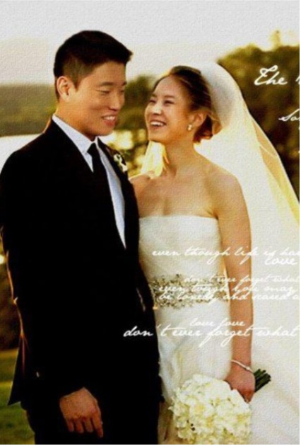 사진에는 블랙 슈트를 입고 미소를 짓고 있는 개리와 순백의 드레스를 입고 아름다운 자태를 뽐내고 있는 송지효가 있다.