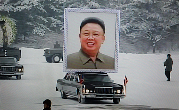 28일 평양 금수산 기념궁전 앞 광장에서 열린 김정일 국방위원장 영결식에서 김 위원장의 대형 영정이 광장을 지나고 있다