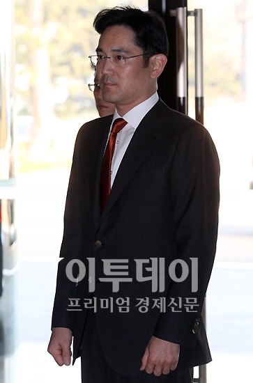 이재용 삼성전자 사장이 2일 오전 장충동 신라호텔에서 열린 삼성그룹 신년하례식에 참석해 이건희 삼성전자 회장이 취재진의 질문에 답하는 동안 뒤편에서 기다리고 있다.